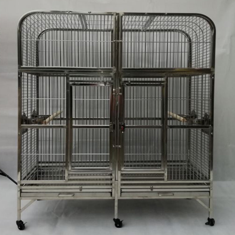 Stainless Steel SUS201 Square Top Twins Style Bird Cage Parrot Cage 56"x28"x75"