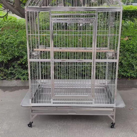 SUS201 Stainless Steel Parrot Cage 100x75x162cm Dome Top Bird Cage Macaw Cage