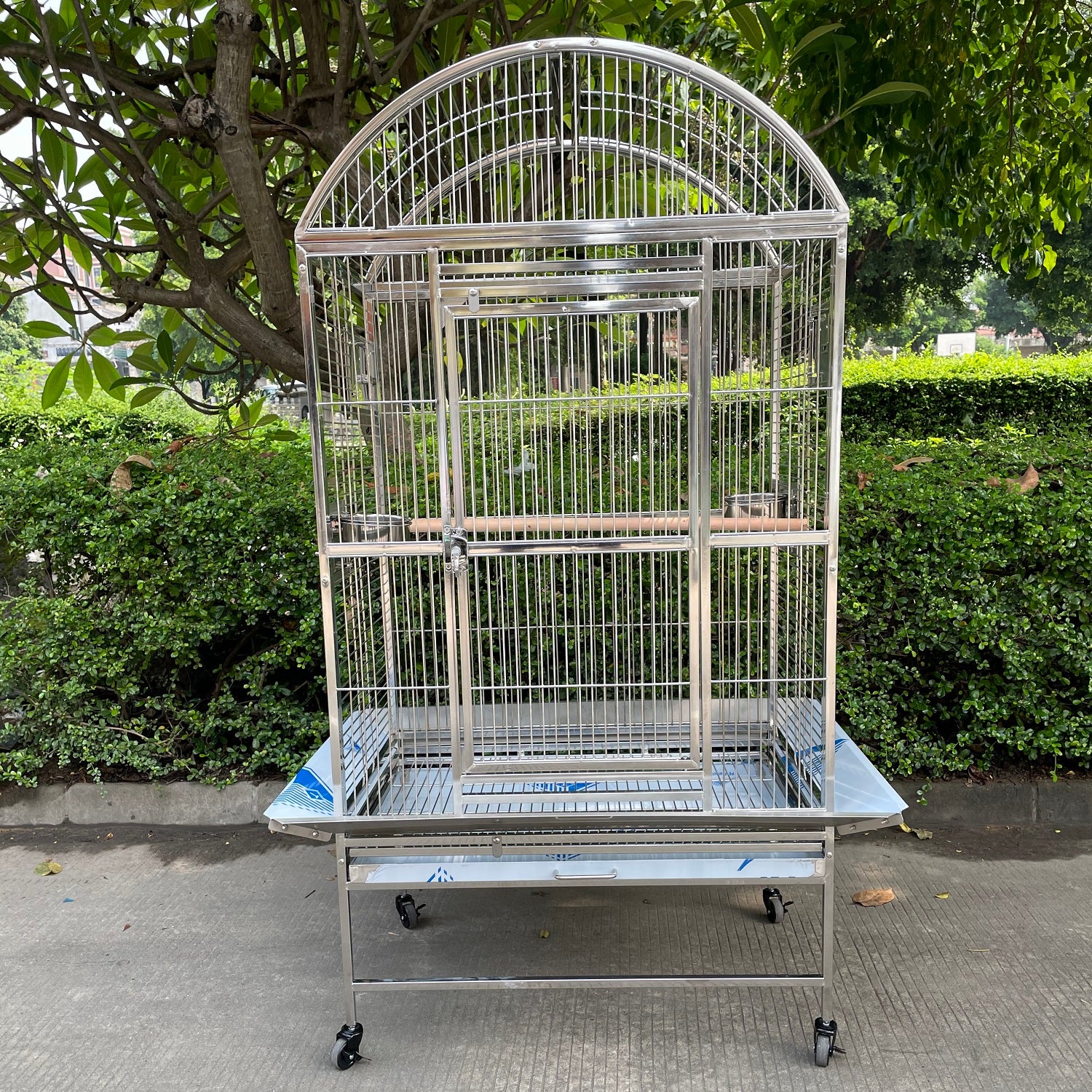 SUS201 Stainless Steel Parrot Cage 80x55x160cm Dome Top Bird Cage Big Macaw