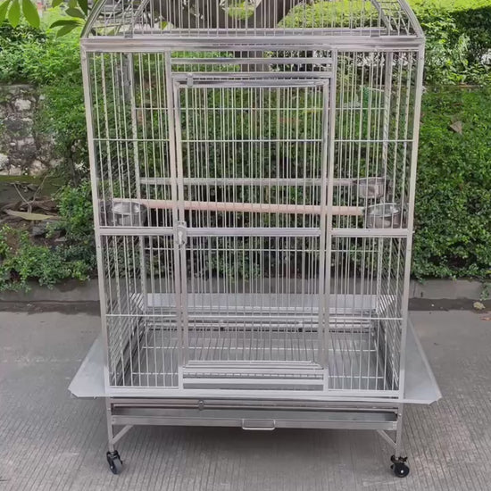 SUS201 Stainless Steel Parrot Cage 90x66x152cm Dome Top Bird Cage Big Macaw Cage